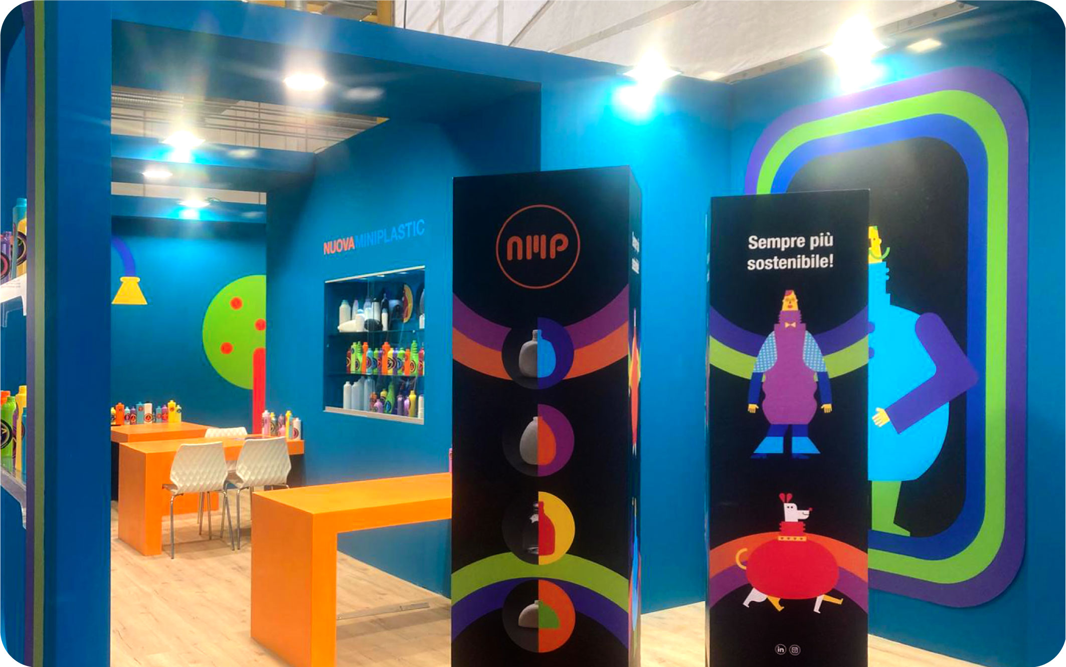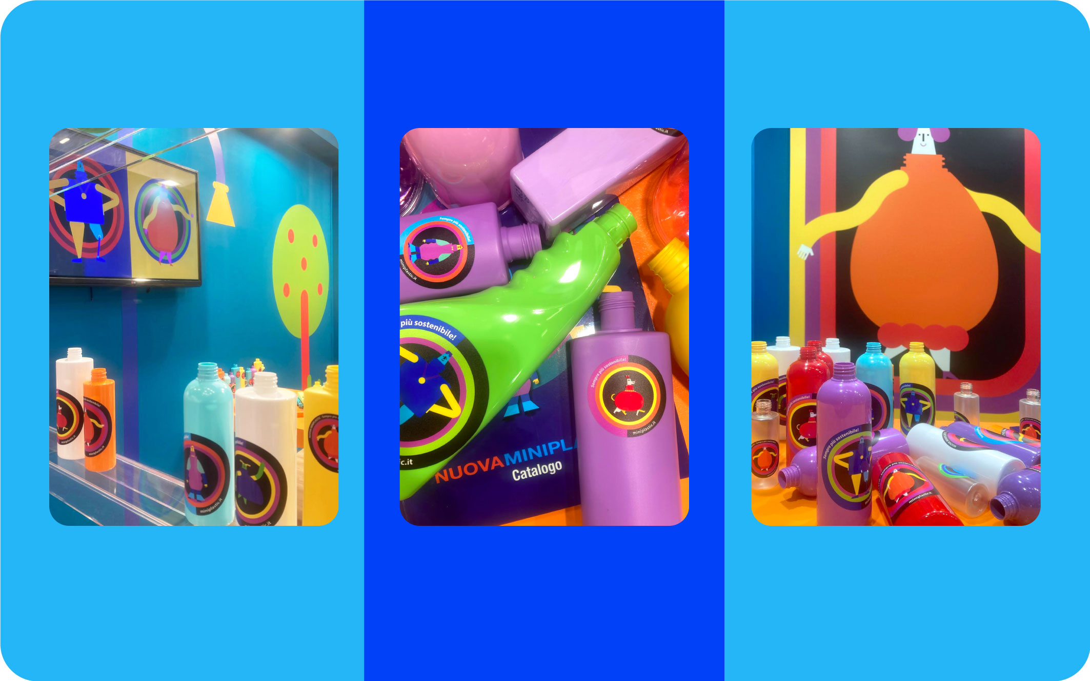 Ho collaborato con lo studio Anna Fileppo alla progettazione dello stand espositivo di Nuova Miniplastic in occasione del Cosmoprof di Bologna. Nello specifico, mi sono occupato dello sviluppo delle illustrazioni, concepite a partire dal design dei contenitori per prodotti dell’azienda, con l’obiettivo di valorizzarne l’identità visiva all’interno dell’allestimento.
